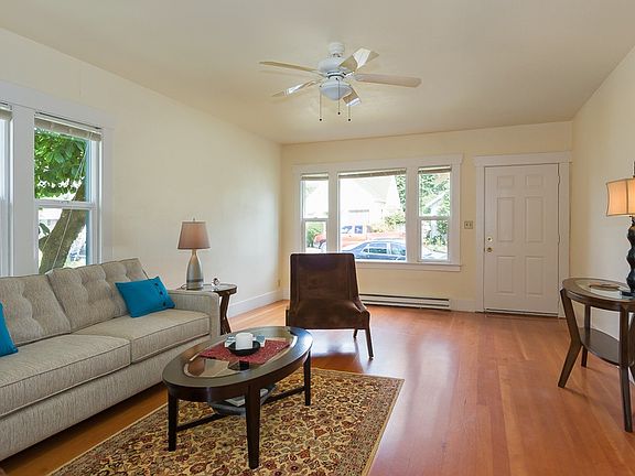 Charming downtown Renton 2BD/1BA that features original fir floors, an eat-in kitchen, and original trim that add to its classic style. Alley access to detached garage and small tool shed with additional parking. Backyard offers an oasis with newly finished deck, fruit tree, and space to garden and play! Blocks from shopping and restaurants at the Landing, Boeing, and Lake Washington.
