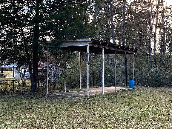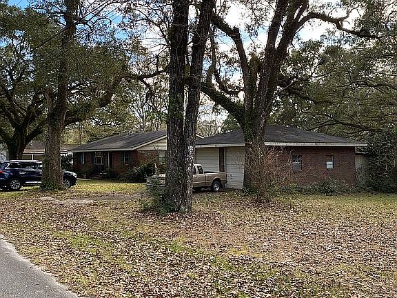 WALK TO SARALAND ELEMENTARY SCHOOL from your all brick 3BR/2BA home in established Saraland neighborhood. Home (1,803 sf) sits on large double lot (.94 Ac), with detached brick specialty garage/shop (791 sf) and high clearance covered RV/Boatport equipped with power. Kitchen with dining area opens to the Family room addition with gas fireplace and built-in cabinets. Combination formal Living Room / Dining Room is accessible from the Kitchen, main hallway and front door. Original hardwood floors under all carpeted areas except Family Room. All electric appliances. Carport with Utility/Laundry room provides plenty of room for washer, dryer and extra freezer or storage space. Large private wooded lot with Live Oaks, Pear trees, Scuppernong grape vines, Satsuma trees and Blueberry bushes. Irrigation pump on site. Plenty of room to add a pool if you desire. Specialty Shop is a Mechanic's dream come true!