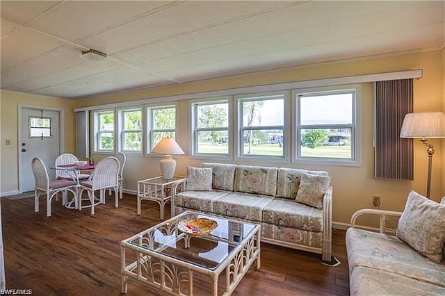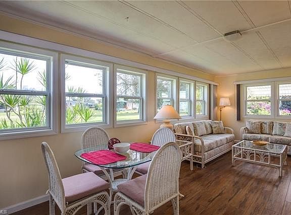 This friendly 55 and over community is in a great location close to downtown shopping, restaurants, and beaches. Comfortably furnished and meticulously clean this 2 bed/2 bath manufactured home overlooks the golf course with tropical landscaping and fruit trees on the property. Enjoy the laminate hardwood floors in Florida room, living room and dining room. The new roof was completed in 2018 and the guest bathroom is partially remodeled! Very social community with plenty to do including tennis, golf, clubhouse, pool, fitness center, billiards, shuffleboard, boccee, cards, and more!