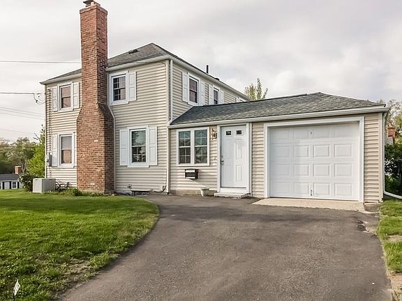 Prominently situated Colonial with views of Island Pond and the new Pope Francis High School. As per owner, in 2011 the vinyl siding, windows, doors, roof, gutters, garage door, furnace and central air condenser were replaced. One car attached garage with driveway off Kipling Street. Large kitchen/dining area with parquet floor. Large living room with wood floor, fireplace and built-ins. Den has the side entry door to home, cathedral ceiling, ceiling fan, tile floor, security system, exit door to deck and electric baseboard heat.