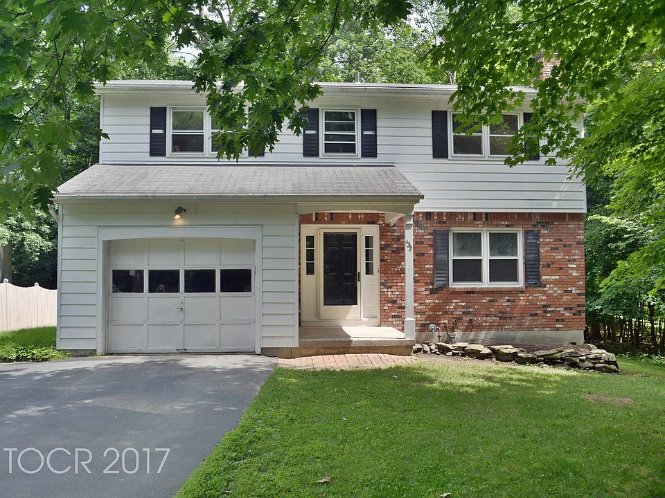 Welcome to this newly updated 4 bdrm, 2.5 bath colonial home in Round Lake Community on .25 park- like level acres. Freshly painted, refinished hardwood floors throughout the first and second floor, updated bathrooms, brand new kitchen appliances and flooring. Great entertaining floor plan! Foyer slate entry invites you into a Formal Living Room with wood burning fireplace, Formal Dining Room and a newer Eat in kitchen adjacent to family room with skylights, recessed lighting and french door leading to a private deck overlooking woods. Guest powder rm and laundry rm complete the first floor. Up the beautiful wood staircase, you will find a spacious master bedroom with his/her closets and full modern bath ensuite. Three additional bedrooms w/ ample closet space and renovated hallway bath provides for a growing family and guests. Plenty of storage in unfinished basement. Enjoy your lake community all year round! EZ commute to NYC via bus, Harriman train station and nearby NYS Thruway. - Basement: Unfinished