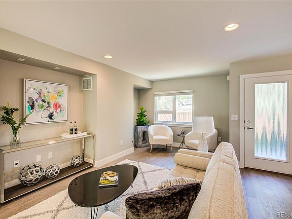 Don't miss the last END UNIT in Forest Park 12! As the most desirable and private unit in the development, it features an open concept floor plan, high end stainless appliances, custom cabinets with soft-close features, quartz countertops, and designer finishes throughout. No detail was overlooked! Bonus features include a living room pre-wired for surround sound and its gas fireplace ready! The rooftop deck, boasts breathtaking mountain views, offers ample space, includes a natural gas line & is wired for hot tub. Location is ideal, providing an urban, yet outdoorsy lifestyle. Property is situated nicely, just blocks from nearby shops and restaurants, parks, and trails. Only minutes to the heart of Cherry Creek and quick access to I-25. This amazing unit is complete and Move-in-Ready!