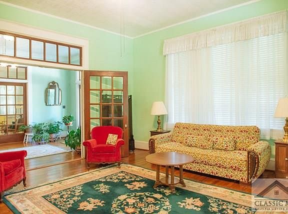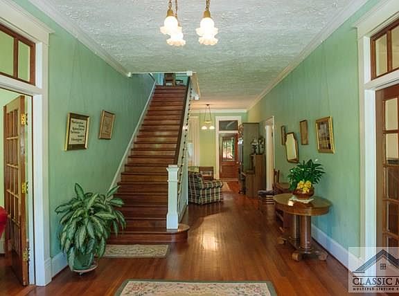 Beautiful 1920's all Brick Georgian located in the city of Maxeys where the Brightwell Scholarship is available. Wide wrap around rocking chair front porch where you can enjoy your morning coffee or entertain guest. Drive up portico on the side of the home. Beautiful oak floors throughout the home. Three sets of French doors with beveled glass. Plaster walls. 1st floor has 12 foot ceilings. 2nd floor has 10 foot ceilings. The window frames are made of Cyprus wood. Eleven fire places. The home has its original metal roof still in great condition. The main floor has a wide dog trot hallway all the way to the back closed in porch. Also a parlor or den, formal living room, formal dining room, kitchen, two bedrooms, 2 bathrooms and utility room. The 2nd floor has three bedrooms, one bath, living room, kitchen and back porch. The living room can be used as a 6th bedroom. This home is perfect for a large family. The second floor could be used as a Mother-in- law suite. It is like having two homes in one. The 2nd floor hall way has excess to a second floor front porch and has stairs to a large attic with flooring for storage. Perfect home to be used as a Bed & Breakfast. Several out buildings that can be used as storage or as a workshop. This beautiful home was built by the Gillen family. The story was told that it took eight box car loads of brick to brick the house. Also history has it that it was the first house in Oglethorpe County to have electricity although it was provided by a generator. Maxeys is located only 30 minutes to the Athens and the University of Georgia and approximately 30 minutes to Lake Oconee in Greensboro. Rare opportunity to own a great piece of history.