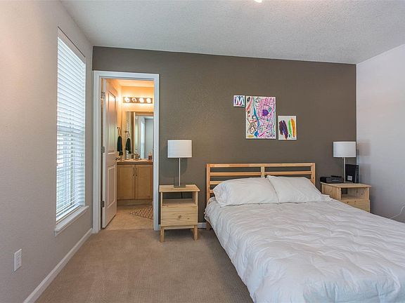 Beautifully maintained and extremely rare York floorplan townhome! This end unit features an inviting layout facing a charming courtyard which offers great privacy. Floor to ceiling windows on three sides allows for an abundance of natural light and "living in the trees" feel. Main floor living offers an open floor plan and oversized balcony for entertaining. The updated eat-in kitchen has a large pantry and counter seating. The upper floor boasts 2 bedrooms with the second full bathroom in addition to the oversized master bedroom with walk in closet and 5 piece bath. Laundry is conveniently located on the same floor. Fourth bedroom with full bathroom is on the ground level, perfect for guests to have their own space. The oversized 2 car garage provides plenty of room for vehicles and recreational equipment. Enjoy all the amenities Belmar has to offer: nearby shops, restaurants, grocery stores, library, outdoor plaza with ice skating, theaters, all within a short walk!
