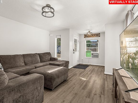 Fantastic bright open one level living with private fenced yard and a block from Clackamas River and parks. In the heart of the wonderful town of Estacada. Laminate floors and thoughtful updates for a clean fresh look. Stainless steel kitchen appliances, refrigerator and new dishwasher included. Large kitchen island with seating and extra storage, large pantry with shelving. Great deck off the dining room slider for entertaining. All vinyl windows and roof in good condition. Friendly neighbors and great school district. No HOA fees or CC&R restrictions!