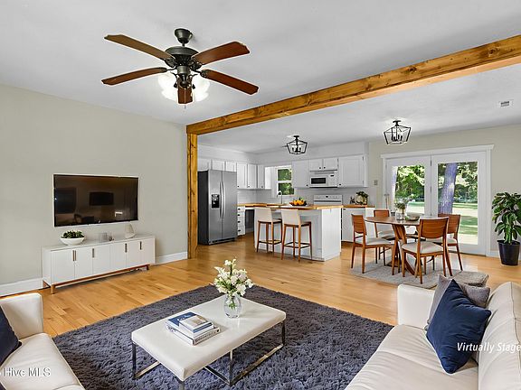 This inviting 2-bedroom, 1.5-bath brick ranch offers comfort, character, and convenience in Craven County. A welcoming covered front porch leads into an open floor plan highlighted by wood floors and abundant natural light. The kitchen features stainless steel appliances, solid-surface countertops, and a large center island that's perfect for gathering and everyday living. A separate laundry room adds extra function and storage.