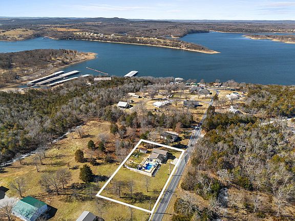 Luxurious and impeccably maintained pool house offering 2 bedrooms and 1 bath, designed for easy lake living. The garage is a standout with space for a 40' RV on one side and a car plus updated kitchen on the other. Step out back to a beautiful sunroom that leads to the living quarters, or head outside to the incredible inground pool, manicured yard, and fire pit area perfect for entertaining. Whether you're looking for a second residence, weekend getaway, or the ultimate lake escape, this one delivers. Just a short golf cart ride to the lake and minutes from Baxter Marina with slip leasing available. A rare setup in an unbeatable location!