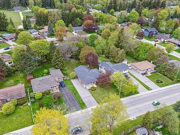 Charming Bungalow with Stunning Features & Backyard Oasis - Welcome to this fantastic 3-bedroom bungalow situated near schools and the local community centre perfect for families and anyone seeking convenience to all that Fergus has to offer. Step inside to find gleaming hardwood and a bright, open-concept kitchen that overlooks the spacious great room, complete with a cozy gas fireplace and an inviting dining area. Soaring cathedral ceilings, a beautiful bay window, French doors, and stained glass accents add charm and character throughout the main living space. Step outside to a private backyard retreat featuring a large deck, mature landscaping, gazebo, and storage shed ideal for relaxing or entertaining. The lower level has fantastic space and provides buyers an opportunity to add even more value to the home with a generous 11' x 19' workshop for the hobbyist or DIY enthusiast. Don't miss your chance to own this thoughtfully maintained and beautifully appointed home. Book your private showing today!