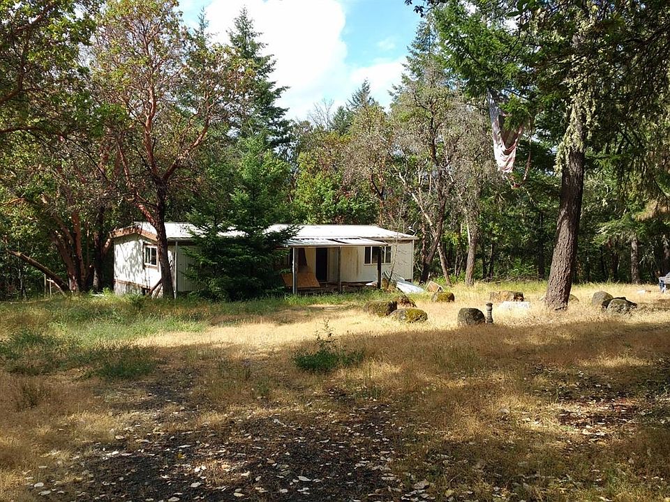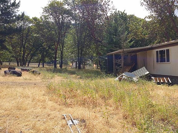 This 5+ acre parcel has septic and well Manufactured home offers no value. But, what it does offer is a beautiful, quiet spot to build your dream home among the pines and madrone. There is even a viewing deck of the pond with a tepee. It has vinyl fenced and gated.