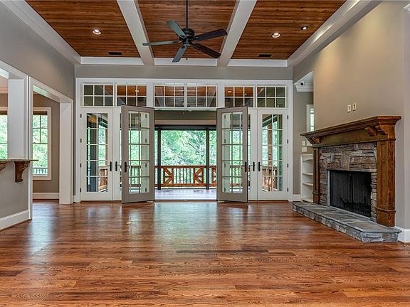 Walking distance to boat slips, acreage and impeccably maintained. Approximately 2.59 acres of land affords you privacy that is hard to find in a gated community. Home has a full house backup generator. The Great Room features a wood ceiling creating the perfect sense of space without overwhelming volume. The wall of French doors stretching across the rear of the home draws in natural light and adds to the airy ambience. A wood burning fireplace in the Great Room. A well-planned kitchen on the opposite side, the focal point of the rear windows remains unobstructed. The well-appointed kitchen includes Wolf, Sub Zero and Bosch appliances. The attention to detail is a pleasant surprise at this price point. The dining area enjoys natural light from plentiful windows that face the yard. You will enjoy the covered screen and retractable enclosed porch year-round with adjoining open deck. The master suite, situated on the main level, enjoys large windows, a spa like bath featuring separate vanities, jetted tub and walk in shower. The master has wood ceilings. The main level is comprised of the Great Room, Dining Area, Kitchen, powder room and laundry room. A key feature of the home is the expansive covered porch adjacent to the open deck. A wide stairway to the lower level offers a second fireplace (gas), wet bar and doors that lead to a covered patio and the expansive backyard work together to provide a second entertainment area and an inviting retreat for guests. This level also offers 3 bedrooms and 2 Full Baths. This home has great storage! Many upgrades added to this home when purchased. An oversized 2 car garage provides plenty of custom storage and offers attic space above. A membership to The Cliffs is available for separate purchase. Call today for your personal tour.