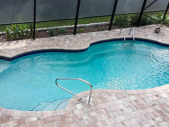 - Pool features: Screened, Equipment Included, Gunite, Salt System, Fiberglass, Heated - Solar, Inground