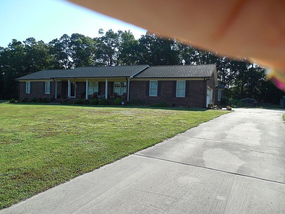 This is a beautiful brick Home with a nice size Front Porch and back patio and a very spacious yard. The Front Door opens into a Foyer with a closet. It opens into a spacious Living/Family Room with a cathedral ceiling with Paddle Fan and brick fireplace with gas logs. The Livingroom is large enough for a small sitting area in front of the windows looking over the Front Yard. The flooring in the Living Room and the Hall Foyer and Hall are all PVC in a oak finish to match the Kitchen and Dining Room Floors. Next is the Dining Room and Kitchen combination with a bar of Bianco Antiqua. The entire Kitchen has been upgraded to Granite Tops and a tumbled Botticino Marble Back Splash and Stainless Steel appliances. The Kitchen and the Dining Room are a oak laminate floor with natural browns and beige painted walls. The Kitchen leads to the Laundry Room with the same laminate floor. There are wire shelving units to hang clothes and set towels when doing laundry and a cabinet for food items. The color throughout the main part of the Home is a very soft coco color and beige with white chair rail and moldings. The Living Room flows to the Office in the back behind the Fireplace.