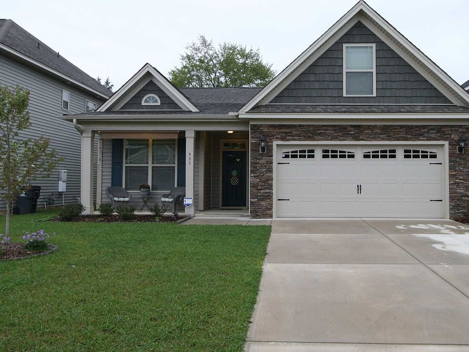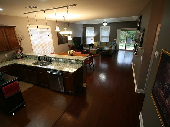 Shows like MODEL HOME w/ tons of upgrades & attention to detail! 2 yr young, ranch style home a Fortress built Westport open flr plan featuring a unique custom cork kitchen flr, 5 burner upgraded SS gas stove, LG Pantry, granite cntr tops w/bar & upgraded lighting. Great rm w/ hardwood floors & tray ceiling perfect to entertain. Sliding glass dr opens up to upgraded covered patio, ceiling fan & wood lined backyard for a quiet outdr living space. Master bedrm on the main is your retreat w/ high box ceiling & fan, upgraded custom paint, HUGE walk in closet, separate shower / tub w/ dual granite vanity. Front bedrm, currently utilized as office cathedral ceilings big windows, lots of light. FROG for perfect Man cave. Must see to appreciate!