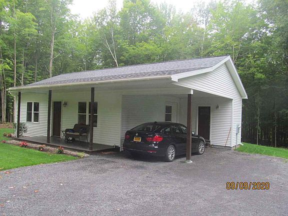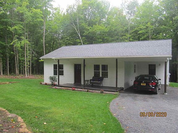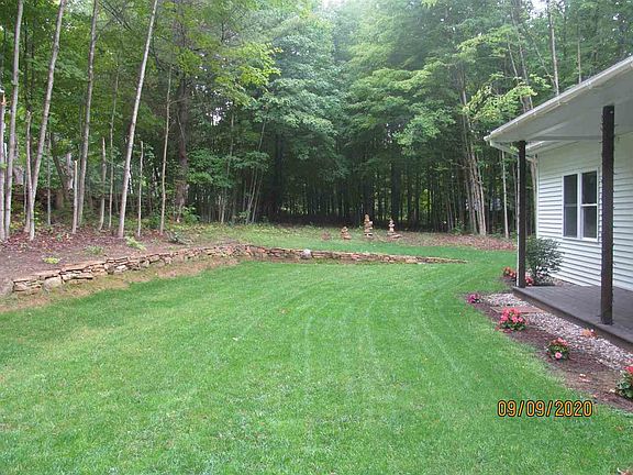 Nestled on the edge of the woods is this sweet ranch home, recently built in 2018. Surrounded by a majestic stone fence and beautifully terraced front lawn, the outdoors are just as lovely as the interior of this property. Enter the parcel thru the fence on the gravel drive and you will find plenty of parking. The carport is conveniently located within steps of the covered front porch. There is an attached shed for storage of any lawn and garden supplies. A nicely manicured lawn surrounds the home and leads to the back deck. Enjoy the fall colors out your back door here, as the woods are home to plenty of maples. Inside you will find an inviting hickory wood floor runs throughout the home. The open concept kitchen/living area feels larger because of the 8'6" ceilings. Each of the bedrooms open off the living room area. This home is heated and cooled by an electric heat pump. Located over the window in the living room, this is a high efficiency heat source with cooling capabilities. There is electric heat, for a back up heat source. This home comes equipped with an on demand hot water heater, state of the art water softener and newer appliances. If you are interested in a low maintenced, move in ready home, look no further.