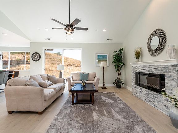 Enjoy the views from this sensational new one level 3 Bedroom, 3 Full Bath open floor plan home in Vichy Springs. Desirable great room with vaulted ceiling and electric fireplace opens to relaxing patio. Gourmet kitchen with Quartz slab island and gracious dining area is designed for entertaining. Includes Granite slab counters, pantry, soft close doors & drawers, stainless gas range & hood, pot filler, microwave, dishwasher, disposal & side-by-side refrigerator. Luxurious master suite with double-sink Quartz vanity, soaking tub, large tiled shower & walk-in closet. Additional room for study or office, two guest bedrooms, two guest baths, convenient laundry room and 3-Car garage. Warm wood flooring, 8 ft. doors, ceiling fans and much more. Large patio for entertaining family and friends.