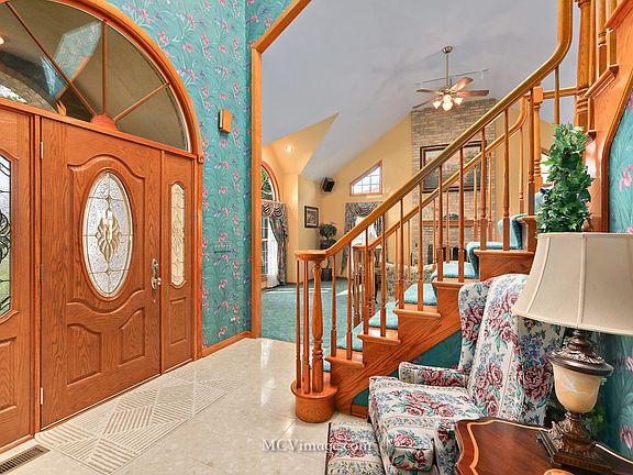 The best of both worlds - close to all the conveniences you expect right down the road (shopping, restaurants, tollways), but in a subdivision with large, private lots! An impressive entryway with 19ft ceilings, skylight, hardwood flooring and a beautiful staircase greet you as you enter this CUSTOM home! The sun-dreanched, great room/family room features a floor-to-ceiling fireplace, beautiful windows and access to the 18 x 12 deck ! Easily entertiain in the spacious kitchen with 42in cabinets, serving peninsula and a 2nd access to the deck (with gasline for your gill) and 22 x 18 patio! The first floor also offers a formal dining area (currently used as a den), a FULL BATHROOM and large laundry room - not to mention plenty of closets/storage. The master bedroom with private bathroom (vaulted ceilings, dual sinks) and HUGE CLOSET (12 x 10) are upstairs along with two other bedrooms - one with architectural ceiling and arched windows - and a full bathroom! If you're looking for an amazing FINISHED BASEMENT look no further... An unexpected, oversized stone fireplace, custom wet-bar/serving area, gaming/pool area AND there's still additional rooms/pace for a music area or office! Since you'll be spening so much time in this area the owners have installed a bathroom too! A storage area tucked under the stairs and workspace in the furnace/utility room round out the lower level. The 3-car, HEATED, FINISHED GARAGE is ready for your hobbies! Relax and enjoy this gorgeous backyard ... you deserve this!