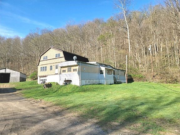 Horse/Animal farm, homestead, or just plenty of room to stretch out. This 33.8 acre property has so much to offer. This livable 2 story with full basement, 3 bdrm (1 full, 2 half baths) house, with some finish work needed and TLC (sold “as is”). The property includes a 32’x24’ Barn with 4 horse stalls, 2 tie stalls, and a lean to, a 22’x8’ shipping container storage shed, a 24’x12’ Run in shed, 10’x8’ shed, a creek that flows through 1 of the 2 fenced in pastures, and a single wide, (11974 2 bdrm, 1bath) mobile home that was recently rented out. The house has gravity fed natural spring water, forced air heat that is fueled by wood, oil, or propane gas, your choice. Don’t miss out on this gem of a property!!!