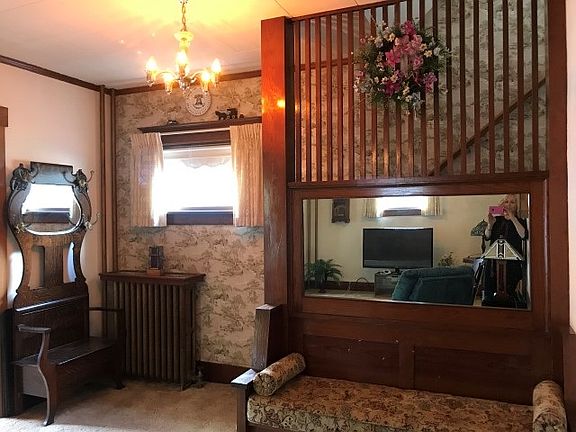 Stately 2 Story on quiet street w/charm galore. Natural woodwork, hardwoods & hdwd under carpet in LR & DR as well. Spacious LR open to delightful sitting room. Stunning Columnades and built-ins define the dining rm yet keep an 'open feeling'. Staircase w/decorative wood design + love seat + leads to 3 generous sized bedrooms w/good closet space & hdwd floors. Large bathroom up as well. Walk-up attice for storage. Great kitchen eat-in area plus a real Butler's Pantry. All appliances stay. Oversized 30 x 24 garage plus "playhouse" or repurposed garden shed. Roof shingles 10 years. Freshly sealed driveway. Seeing is Believing.