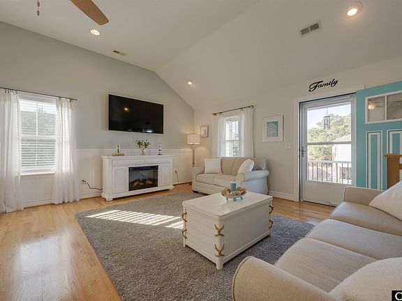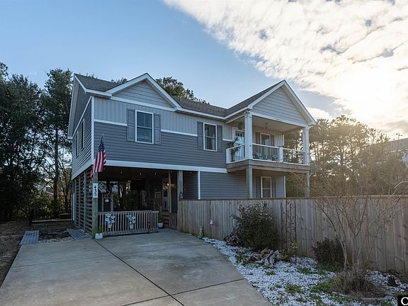 As you go down the steps to the outside, the carport is set up with outdoor furniture for lounging in the cool afternoon and evening breezes. Most of the yard is fenced for pets or children. There is a sitting area with firepit in the front yard. The back of this lot has mature trees and is bordered by the Bickett Street creek which runs from Kitty Hawk Bay to W. Bickett Street providing a private backyard with no homes right behind you. The storage shed has plenty of room for storing beach chairs, lawn and garden tools. The large outside shower with dressing area is a great place to rinse off after a day at the beach. This move-in ready home is a quiet and relaxing oasis from the hustle of everyday life and offers easy access to the beach or Bay Drive. Hop on your bike and head to Front Porch Cafe at Milepost 6 for a cup of coffee or to the bike path along Bay Drive!