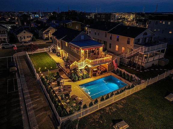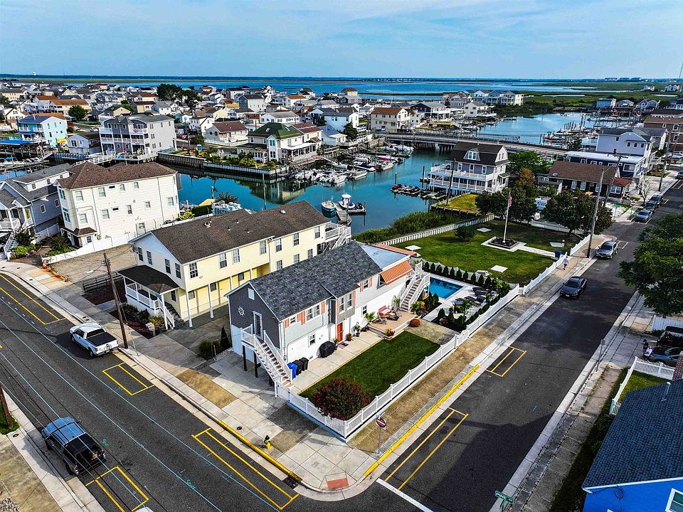 JUST LISTED. Summertime oasis. Buy now and move-in prior to the 4th of July fireworks. Water views and sunshine abound from this unique and well-maintained bayside raised rancher, sitting at the edge of the bay at the Wildwood Canal and Post Creek Basin. This attractive home is located on corner of Lake Road & Pine Avenue on a 50' X 100' fenced in lot with a large, heated pool overlooking the Wildwood bay, city park and close to all waterfront activities. It's the perfect location to watch the fireworks every Friday night in the Summer. The home is the only home on the street and has 2 bedroom and 2 full bathroom, was raised in 2018 + new roof and had been improved extensively by the current owner. Enter the building from Pine Avenue and the top floor consists of the 2 bedrooms and 2 bathrooms- one with a tub shower and one with the glass- enclosed shower, living area with large TV, dining area with ample seating, kitchen with gas stove, ample cabinetry and counter space, laundry room with full-sized washer/dryer and tankless on-demand HWH, large sun room with ample natural sunlight and large deck (160sf) with awning overlooking the bay and a stairway leading to the side yard and large pool area. There are 3 decks Trex decks with vinyl railings, maintenance-free vinyl siding and recently painted foundation, keyless entry doors, full attic, ceiling fans in every room, Bahama shutters and window treatments. Roof was installed in 2018 along with new electrical wiring. Full street parking along Lake Road plus the driveway and also parking along Pine Avenue Key upgrades since 2023 include: 200 Amp Service and wiring, 170 feet of new vinyl fencing, 2 ductless AC units 14 x 24' inground gunite & gas-heated pool with depths from 3' to 5.5', an additional 700 sq.ft. of concrete decking around the pool, a lower deck (136sf),significant outdoor landscaping including 40 Emerald Arborvitae trees w/ irrigation, low voltage landscape lighting and string lights, outdoor storage shed, outdoor shower, under deck drainage system. Sold furnished. Everything is included including bikes, portable heaters, cocktail tables. This unique property is truly the perfect Summer vacation home and getaway. Days and nights here are the finest that the Jersey shore has to offer. This property must be seen in person to truly appreciate all that it has to offer. The ground level space features additional bonus rooms. Call today to schedule a private showing. This is the one!