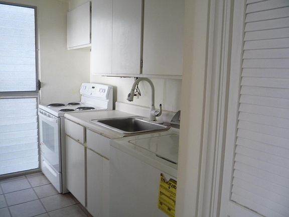 Bright, attractive, restaurants, and bus line Upgraded kitchen and bathroom Unfurnished Appliances: refrigerator, range, microwave oven, disposal, washer and dryer, water heater Lanai One covered parking Secured building and parking Tile flooring Water/sewer and basic cable included, electricity not included No pets or smoking