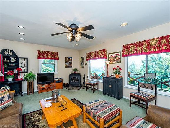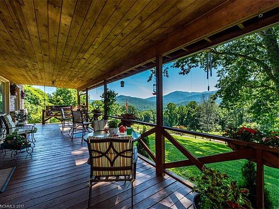 Amazing breathtaking year round long range views make this most perfect Cape Cod style home stands out among mtn. homes. Wake up and enjoy the sounds of nature from the home's porch swing, have your meal outdoors on the spacious covered full length front porch taking in the various four seasons of Western North Carolina Mountains or breath in the fresh mtn. breeze from one of two balconies to the left or right BR on the upper floor.Enjoy dual masters on both levels for inter-generational convenience, each having a private in suite bath.Upstairs master bedroom is so large it has it's own living room area within for a get away within your own dwelling. This home also has a large detached full powered workshop which can receive the wifi signal for the perfect man cave or she shred on the grounds.Previous homeowners have put built-ins under stairs, placed pullout drawers within bedroom walls & many other details to fully ultilize every available space for optimal convenience of living
