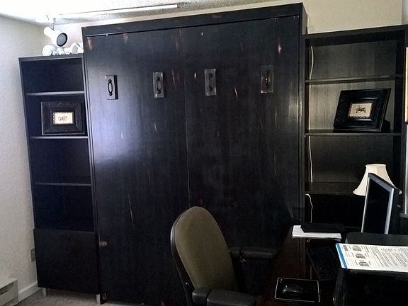 Very quiet area with concrete under carpet. New fridge, stove, microwave, washer/dryer in unit and water heater are all less than a year old. large master bedroom with added walk-in closet. Second bedroom directly across from master. 2 storage lockers, one on the deck and another at ground level. Sleep with your windows open as the unit sits 12 feet above parking area. The great deck is east facing, for relaxing without the sun blazing! Two parking spaces. Only to steps to elevator Low HOA dues
