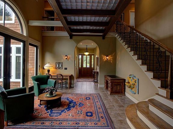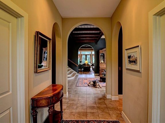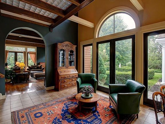 The inspiration for this Italian Villa styled home came from a small town in Tuscany. Designed by a prominent architect, it was important to intertwine gardens, landscape & home. Front Entrance with 2 story stair & hall provides a peek at the architectural delights throughout. Wall of windows lead to the first floor Master Suite, private bath, individual closets & dressing rooms. The Kitchen is the heart of this home, a chef's dream; Convection Oven, Dual Fuel Range, Walk-in Pantry, Oversized Island & Stunning Custom Cabinetry. 1st floor Laundry showcases Custom Craftsman cabinetry, abundant storage. The dining room is surrounded by an open porch offering sweeping views of surrounding gardens & landscape. The living area with beamed ceilings, rich hardwoods, arched doorways & pillars compliment the custom centerpiece fireplace. A grand staircase leads to a unique glass & wrought iron walkway that connect 3 oversized bedrooms & full bath to a powerfully designed home office. Formal gardens surround the home and welcome private time or entertaining. The outbuilding graces the grounds with endless opportunities to become: A Classic Car Showroom, Art or Music Studio. Benvenuto A Casa!