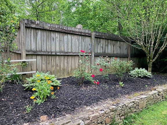 Very secluded, Back of neighborhood, in cul-de-sac, surrounded by woods that will never be built on. Back yard is mostly flat with privacy fence and large in ground pool. Mature fruit trees. Large rear deck with gazebo. Two door garage and basement is 1200 square feet. Full porch on front of house. House has been recently painted outside. New screens. Entirely new A/C-Heat unit on first floor, upstairs unit has been rebuilt with new compressor about 7 years ago. 9 foot ceilings with crown molding and 18 foot entrance way. New pool liner with one year on pump and filter. 6 ceiling fans. Two fire places. Master has his and her walk in closets, separate vanities, jetted tub and shower. Part of property is against back of Veterans Memorial Park. Also community pool near entrance.