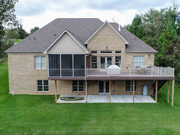 This luxurious, custom-built, brick home in Highland Park was built by Gary Crummett and has an open floor plan with great room open to the gourmet kitchen, screened porch and large composite deck with seasonal views of Massanutten Peak and Lake Shenandoah, dining room, home office and powder room. The main level features an expansive master suite, two additional bedrooms (and second full bathroom), and over the garage you'll find a guest suite with full bathroom. The lower level features an enormous rec room, a second kitchen, a bedroom and full bathroom and plenty of room for storage! Enjoy upgraded Quartz kitchen countertops, handscraped hardwood floors, granite bathroom countertops, an induction stove, two heat pumps and much more!