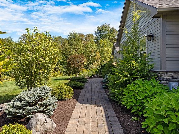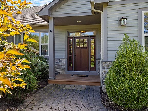 There is enhanced insulation, including under the basement floor, Tankless hot water heater for energy efficiency. Three car garage offers closet space for storage and step free entrance to the house. Enjoy the lush, professionally landscaped yard and wooded views of a peaceful creek— truly a serene and private setting.