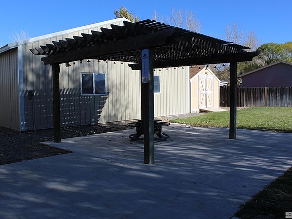 Very unique floor plan for this Mfg. Home that has 3 bedrooms, 2 full bath, large pantry, office/den and laundry room. Floor plan is attached in the pictures area. All the kitchen appliances stay as well as the washer and dryer in the laundry room. There are ceiling fans in the office and all the bedrooms. The 30x30 foot garage as well as the home have metal roofs. There is also a 12'x16' storage shed with build in storage shelves. The back yard has a covered cement patio, large lawn area on auto sprinkler., This Mfg. home is located on a corner lot with the back yard fully fenced and lots of additional parking area on the side of the home for RV's boats or what ever.