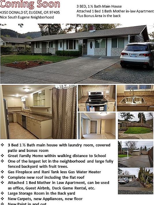 This 1725 square foot single family home has 4 bedrooms and 3.0 bathrooms. This home is located at 4350 Donald St, Eugene, OR 97405.