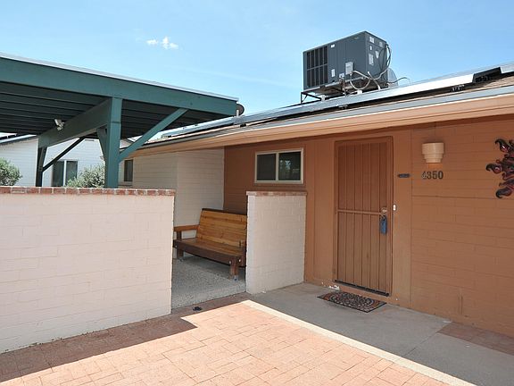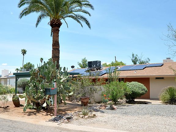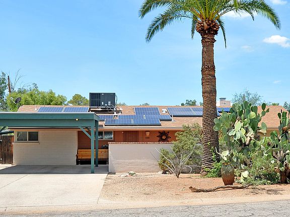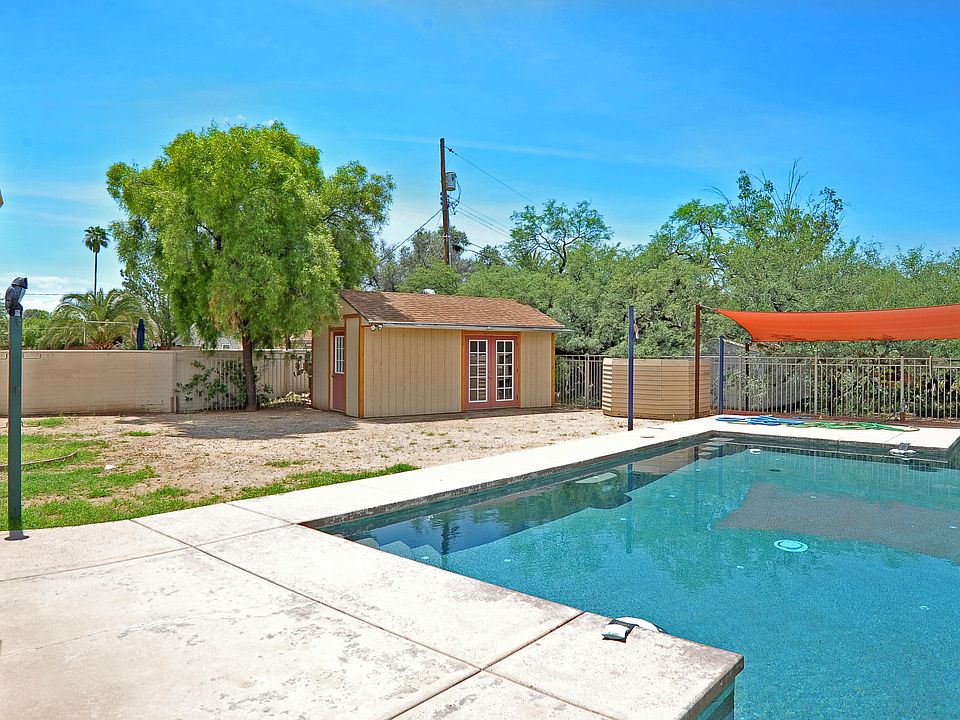 * Let's start with a brand new roof 6/21, new tankless water heater 6/21 and new a/c heat pump 7/18....add to that 4 bedrooms and 3 bathrooms and a pool! The front entry has a walled courtyard for entertaining and most of the house has epoxy coated concrete floors, 3 bedrooms have carpet. The split floor plan has lots of entertainment space a wood burning FP, dining space, large greatroom and open kitchen. Double French doors lead to the covered patio and gorgeous pool. There is a large storage room/shed in the rear yard, outdoor shower and sink area. The master bedroom w/ door to the rear yard, lots of closets, remodeled shower and dual sinks. The 4th bedroom has an ensuite bathroom as well! The home has newer windows, leased solar, extra parking and termite warranty to 8/22