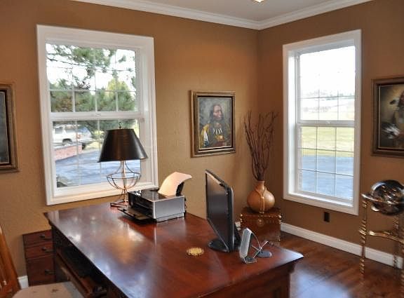 Prime rural East Medford location with major addition and remodeling in 2003 with all the right amenities. Large pond with fish. All irrigated with electric gate and paved driveway. 5 car garage. 19' Large entry. Many travertine & hardwood floors. Gorgeous large kitchen with sub zero refrigerator, huge Viking double ovens with 6 burner gas cook top with griddle, cherry cabinets. Many built ins, 3 fireplaces plus outdoor fire-pit by lagoon in ground pool with beach entry. Out door kitchen with granite. Main floor master with fireplace sitting area, French doors to spa, large travertine steam shower with rain shower duel heads, double sinks & soaking tub. Great upstairs kids family room plus library and work room, lots of crown molding, speaker surround system in and out. 2nd family room with open beam ceilings, floor to ceiling rock fireplace, wet bar, w/ wine refrige, slate flooring, Central vac, great work out room off 1st laundry room. This home has it all!!
