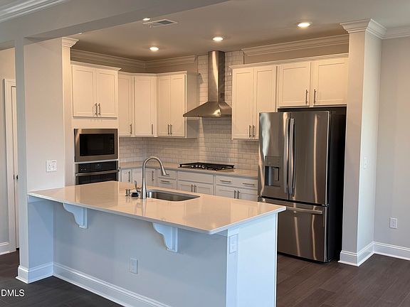 Stunning brand-new luxury single-family home offering over 2600 sq. ft. of beautifully designed living space filled with abundant natural light. This home features 5 bedrooms and 3 full bathrooms, including a first-floor guest suite with a full bath. Enjoy outdoor living on the screened-in porch overlooking a flat, private backyard. Fiber-optic internet is included in the rent. The first floor boasts luxury vinyl plank flooring throughout, with spacious formal living and dining areas. The fully upgraded kitchen features soft-close cabinetry, brand-new stainless steel appliances, quartz countertops, and ample storage. Perfect for relaxing or entertaining. A spacious two-car garage completes the main level. Upstairs, the expansive primary suite offers a large walk-in closet and a spa-inspired bathroom with dual vanities and a tiled walk-in shower. Three additional generously sized bedrooms are located on the second floor, along with an additional full bathroom and a separate laundry room with a utility sink. Ideally located near shopping and dining with easy access to I-540. Harris Creek Elementary School is just a short distance away, and a Publix shopping center is only minutes away at Forestville Road and Buffaloe Road.