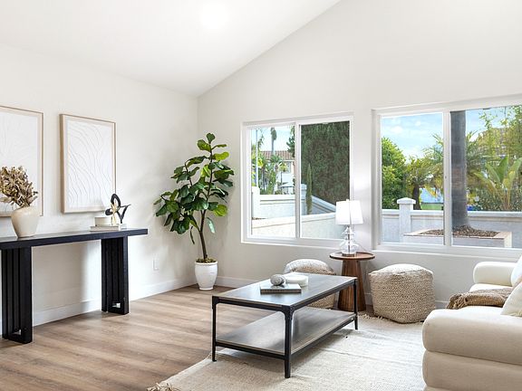 An exceptional opportunity awaits in the highly desirable, newly remodeled 4-bedroom, 2.5-bathroom luxury residence spanning 2,067 square feet in coastal Tamarack Point, Carlsbad. This turn-key property is perfectly positioned on a quiet cul-de-sac with an extra-large 11,886 square foot lot and no rear neighbors, ensuring unparalleled privacy. The home features a bright, open-concept floor plan ideal for modern living, highlighted by vaulted ceilings and a custom-tiled fireplace for a spacious, luxurious feel. The designer kitchen is an entertainer's dream, boasting new stainless steel appliances, quartz counters with a custom island, custom European-style cabinets, and sleek gold-colored plumbing fixtures, all complemented by gorgeous ceramic backsplash tiles and new luxury vinyl plank flooring throughout the main areas. The spacious primary bedroom also features vaulted ceilings and a walk-in closet, while all 3.5 bathrooms have been professionally remodeled with contemporary fixtures and lighting. This impeccably maintained, low-maintenance home offers a rare leasing opportunity for a discerning tenant seeking a premium lifestyle near the North County coast.