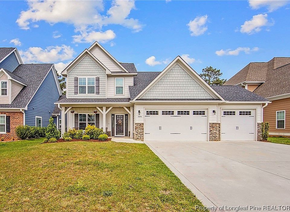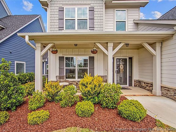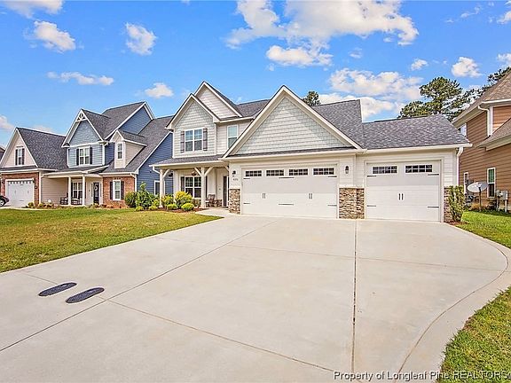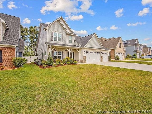 5 Bedroom, 3.5 Bath, 3 Car Garage Two Story home. Primary Suite downstairs with large walk-in closet, tile shower, and garden tub. Open living space, Island Kitchen w/Stainless Steel Appliances, Gas Range w/double ovens in range, and refrigerator. Formal Dining Room or sitting room, 1/2 bath & laundry down. The laundry room features front-loading washer and dryer. 4 bedrooms and 2 baths up. Ceiling Fans, White Graduated Cabinets, Granite, Tile Backsplash, and tankless water heater. Back yard features a covered patio, a vinyl privacy fence, and a trampoline. Beautiful neighborhood with a community dock on Lake Upchurch. Highly sought after schools and Close to the new Fayetteville outer loop.