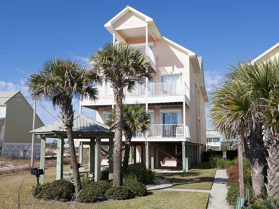 Unit F Beautiful Gulf front duplex with 5 bedrooms, 6 full baths and 1 half baths. Fully furnished with new flooring. Very well maintained rental with great established rental history. Condo has common area pool and gazebos for cooking out and entertaining with friends and family. Close to Marina and Historical Fort Morgan. Just steps from beautiful white beaches. All measurements should be verified by buyer or buyer's agent, if deemed important to the purchaser. All information is deemed reliable, but not guaranteed. HOA monthly dues of $1176.00 covers insurance on the building, common area insurance, reserve funds, and pest control.