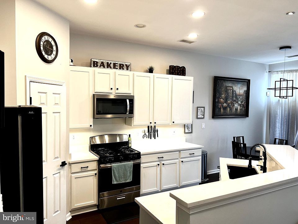 Nicely updated 3bed, 2.5 bath townhome in South Riding. New appliances, white quartz countertops, hardware and deep black stainless steel sink, new hot water heater and AC (2022), new roof/hvac (2019). Beautiful bamboo on the first floor with 10ft ceilings, gas fireplace and front flex room (office, gym, game room). The 2nd floor has the primary bedroom with large bath, two large closets, laundry room with new Samsung Washer/Dryer and an office with built-in desk/shelving. 3rd floor features two large bedrooms with Walk-In-Closet, Jack and Jill bath and bonus loft living room. Smart thermostat and smart switches throughout. Large private courtyard leads to 2 car garage with Tesla/EV outlet installed and plenty of storage. All the major updates have been done, just move in and enjoy!