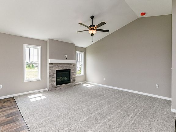 This is Abode Construction's Ozark plan featuring a split bedroom plan, with a primary bedroom suite that includes a double vanity and walk-in closet; and one additional main floor bedroom; main floor laundry room; another full bathroom; and an open great room/kitchen/dining space. The kitchen offers an island with breakfast bar and a dining area that opens to the back covered deck. The lower level finish includes two additional bedrooms, a full bath and a large family room with a walkout to the rear patio. Additional featured selections for this home include 3-stall garage; gas fireplace with stone wall and floating mantle, quartz kitchen counter top; Adura plank and tile flooring; Onyx vanity tops in the bathrooms; and more. . This building has a passive radon system installed. Materials and selections subject to change without notice due to product availability