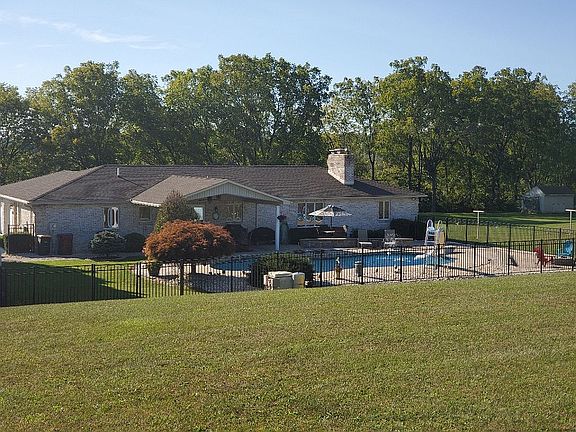MULTIPLE OFFERS RECEIVED-HIGHEST & BEST BY TUESDAY NOON-EXCEPTIONAL 4 BR, 3 Bath Solid Brick Ranch on 2.5 Private Acres has Beautiful Views & MANY Amenities! Enter a tiled foyer & into a large Family Room w/HW floors & propane stone FP. Kitchen has been updated-soft close cherry cabinets/granite counters/tiled backsplash/SS Samsung Appls/2 pantries/HW floors. The right wing of the home is the Master Suite, updated Master Bath, walk-in closet & laundry room. The left wing has 3 additionalBR's w/new carpeting & updated bath. There is approx 1500+ sq ft of finished space in the basement which also has a beautiful stone, wood burning FP & full bath. The covered patio is a great place to relax before enjoyinga dip in the newly resurfaced in-ground pool! Attached 2 car garage has a professionally finished Epoxy floor. The crowning glory of this property is the detached 3 car garage with 10' doors perfect for your boat, RV or contractor business. Seriously a MUST SEE to TRULY appreciate! 2021-03-17
