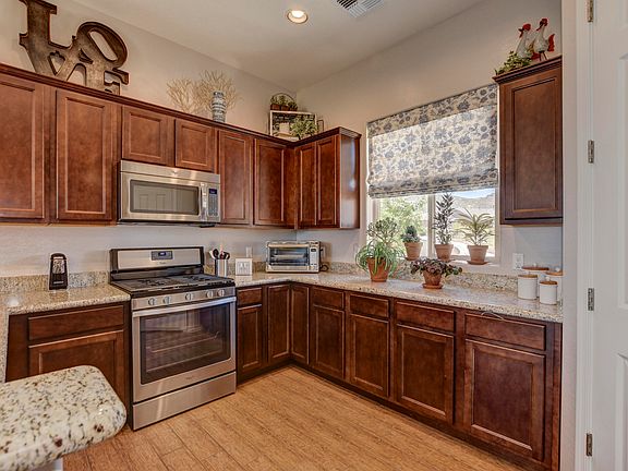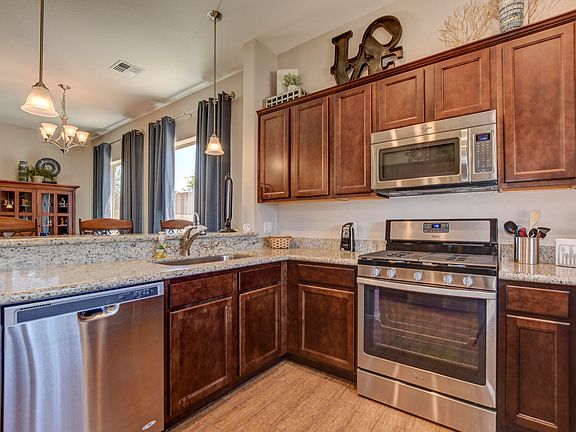 Immaculate, move-in ready, super cute home in Granville sits up on a higher lot for great views of the mountains from the backyard. This popular floor plan is on trend in its colors and loaded with upgrades like gorgeous granite counter tops, a single basin sink, wood-look tile floors and custom draperies. In addition, this home has a 2.5 car garage with a 4' additional extension for LOTS of room! Newer stainless steel appliances as well as washer and dryer convey. $1200 security door. Backyard is fully landscaped with pathways, rock and trees that will fill in to be beautiful. Don't miss this perfect beauty!