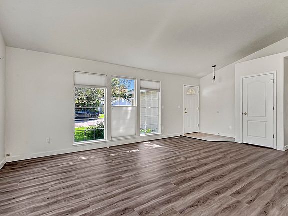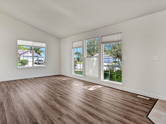 Thoughtfully updated and easy living situated on a sunny corner lot in one of Boise’s most central locations - close to schools, shopping, and just minutes to two neighborhood parks. There is no wasted space with 1093 sq feet. Feel welcomed by open living space with vaulted ceilings, new LVP flooring, and natural light that pours into the open living and dining areas. The kitchen includes a breakfast bar and connects seamlessly to the dining area—great for everyday meals or casual entertaining. The large bedrooms have brand-new carpet, offering flexibility and the cozy retreat you’ve been dreaming of. The oversized bathroom offers generous space and a large linen closet. Outside, the fully fenced backyard is ready for summer evenings, gardening projects, or a furry friend or two. Mature trees offer shade and privacy, while the corner lot location provides a sense of space.And when it comes to location, this one really delivers. You're minutes from The Village at Meridian, grocery stores, restaurants and more!