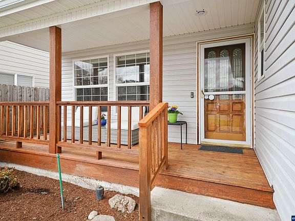 Delightful Home offers lots of natural light & comfort. Enjoy evenings on the front porch or out back on the expansive newer deck. New Roof 2022, Home features spacious Kit & Din areas, lots of storage, ample size rms w/ceiling fans. Primary BdRm w/lovely bay window great for sitting area. Inside Laundry w/storage. Gas FP in FmRm. Water heater approx 6 yrs, Kit Range (approx 5 yrs) has airfryer & convect bake. Hard to find RV pad w/hook-ups, a Shop and shed. The Sellers have LOVED this home. You will too!