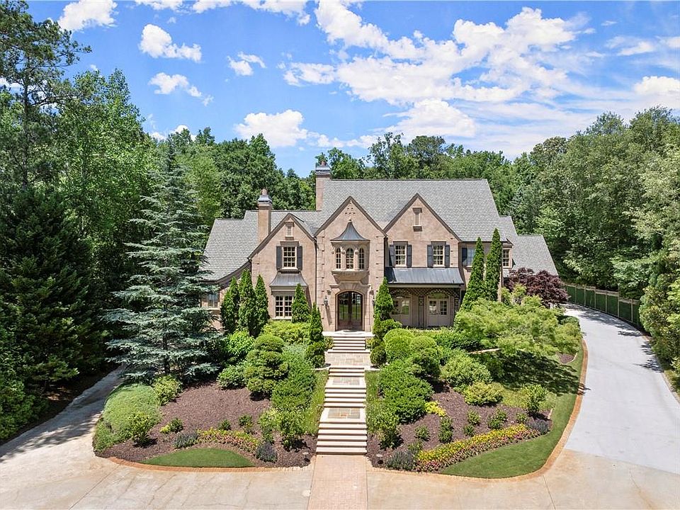 Situated on an impressive 2.2-acre gated estate lot in the desirable East Cobb area just outside Atlanta Country Club, this custom-built home by Steve Edison is a masterpiece at every corner. As you drive through the meandering driveway and meticulously landscaped grounds, you'll feel like you've arrived at a charming villa in the Provence countryside. The exterior boasts elegant hardcoat stucco, setting the tone for the luxury that awaits inside. Upon entering the home, you are welcomed by a grand two-story foyer encircled by a breathtaking circular staircase—one of three staircases within the residence. The main level features a spacious owner's suite with custom-built closets and a recently renovated white marble bath, offering a serene retreat overlooking the expansive 22x41-foot pool and lush gardens. The main level also includes a cozy library/office with a fireplace and built-in cabinetry, a generous dining room, and a brand-new kitchen equipped with sleek cabinetry, high-end integrated appliances, Neolith countertops, and a spacious island. Complementing the kitchen is a scullery, walk-in pantry, and two family gathering areas with fireplaces and built-ins. Additionally, there is an extra office, three half baths, and a sizable mudroom/laundry area. Moving upstairs, you'll find five spacious bedroom suites with ample closet space and a bonus room for added flexibility. The terrace level is perfect for entertaining, featuring a seventh ensuite bedroom, a climate-controlled wine cellar, a stylish bar, a theater, a fitness studio, and a game room. The outdoor space is equally impressive, offering a covered porch at walk-out level, a stunning pool, a playhouse, a covered grilling and cooking area with a fireplace, a bathroom, and plenty of flat lawn space for various activities. With a total of six garages (four on the main level) and six fireplaces throughout the home, this property seamlessly combines luxury with functionality for today's lifestyle. Located in the top-rated school districts of Sope Creek, Dickerson, and Walton, this home offers the perfect blend of elegance, comfort, and entertainment. Live like you're on vacation every day at 4351 Paper Mill Road.