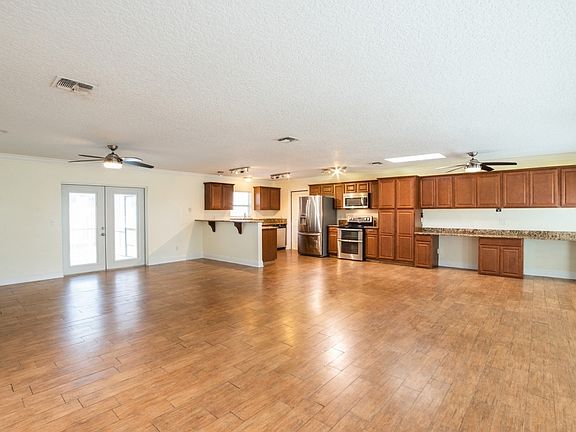 • Interior Features: Ceiling Fans(s), Eating Space In Kitchen, Master Bedroom Downstairs, Open Floorplan, Crown Molding, Solid Wood Cabinets, Kitchen/Family Room Combo, Solid Surface Counters