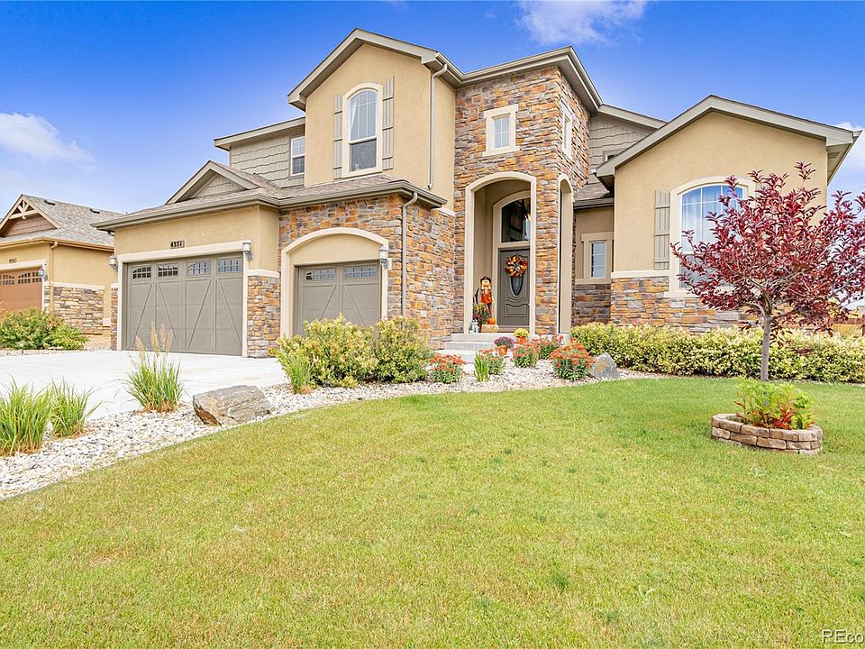 This elegant & meticulously maintained home will capture you! Located on a .25 acre corner lot on a cul-de-sac.This incredible open floor plan makes it easy & fun to entertain. Enter to see dark wood floors flowing through all main living areas. Kitchen has tons of cabinets w/ large pantry, granite counters & SS appliances, double ovens, breakfast bar and additional eating area with a separate formal dining room for your special gatherings! The main floor spacious Master bedroom has brand new carpet & tray ceilings.The luxurious master bath has a jetted tub, double vanities & flows to the large walk in closet. Upstairs has a cozy loft, two bedrooms plus a full bath. Finished basement boasts of 2 Bedrooms, a full bathroom, a family room, wet bar that seats 8 plus and 2 flex areas. The large back yard includes lush landscape, a water feature, a large patio w/ a pretty pergola and is fully fenced. Epoxy floors in the 3 car garage. NO METRO TAX!