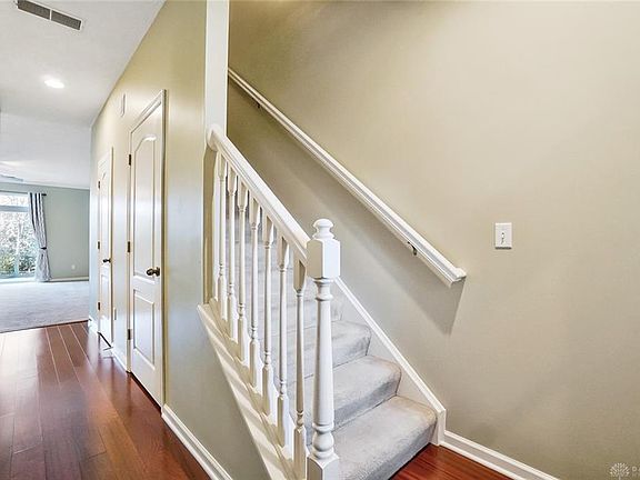 As they say - location, location, location!!! Centrally located spacious Townhome with attached garage is just what you are looking for! Gleaming hardwood floors meet you at the entrance and lead to the open Kitchen with breakfast bar which is perfect for a quick bite or entertaining in the Great Room. Sliding doors open onto the patio which has a wooded view and also overlooks the community pool. Upstairs the large loft provides additional living space - perfect for an office, reading, gaming or binge TV watching! The full bath has ceramic tile flooring with a relaxing garden tub/shower combo and sits between two generously-sized bedrooms, each offering cathedral ceilings and double closets. The washer & dryer in the second floor laundry convey and make clean up a breeze. The original owner selected this location because it offered easy access to Business Parks, WPAFB, and downtown Dayton via I-675 as well as nearby shopping and entertainment at The Greene and The Fraze Pavillion.