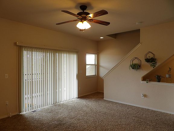 Peaceful townhome with amazing views of Pikes Peak. High ceilings and lots of space for entertaining throughout. The kitchen and living space is open concept with access to a fenced private patio. Plenty of natural light and two bathrooms with bathtubs in each. One half bath on the main level. Two car garage for storage and parking. Huge private balcony with more breathtaking mountain views. Master bedroom has a large soaking tub. The home is equipped with Central A/C, a fireplace, and the best part is that landscaping and snow removal is included. No pets allowed.